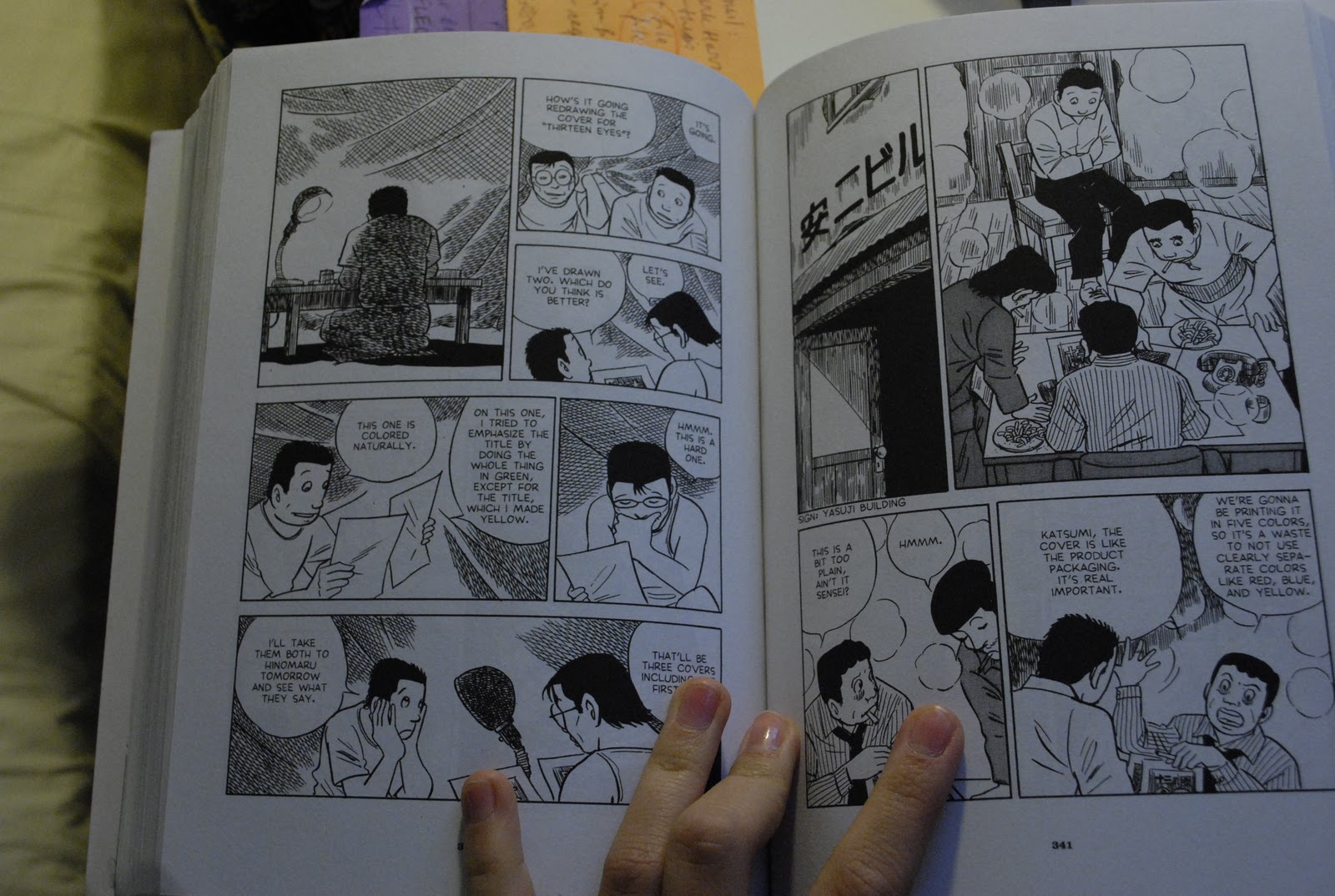 Here they are all stacked on my desk. From top to bottom: Contract with God by Will Eisner; One Hundred Demons by Lynda Barry; Ice Haven by Daniel Clowes; Ghost World by Daniel Clowes; Mira Caligraphiae Monumenta; Palookaville by Seth; A Drifting Life by Yoshihiro Tatsumi;