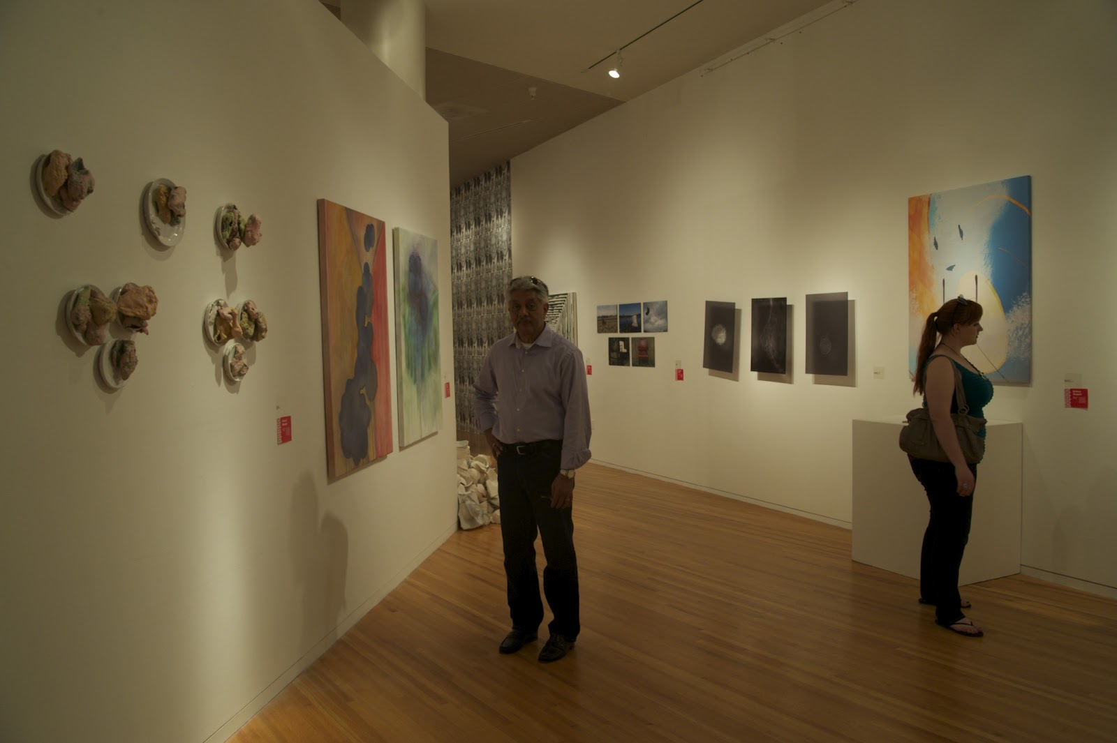 But the opening was crowded and hot, and a bunch of people I didn't expect to come came. Before the crowds descended my dad and I took pictures with his really nice full-frame camera. So here. (Disclaimer, I didn't know how to set the white balance on his camera, so it was on auto. Meh.)